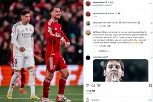 麥卡在進球后比出“A”字母慶祝的動作,也被很多人視為對阿諾德的“貼臉開大”,因為這和阿諾德的慶祝幾乎一模一樣。