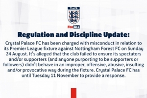 體育資訊11月5日訊 英足總發(fā)布官方公告,確認水晶宮俱樂部因球迷行為不當遭到指控,需要在11月11日之前做出回應。