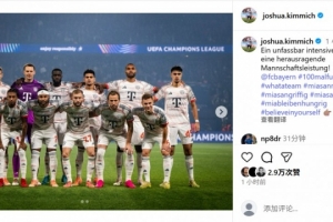 本場比賽也是基米希生涯第100次在歐冠出場,他在個人社媒曬出全隊合照,配文寫道:“在這一場緊張激烈的比賽中,球隊表現(xiàn)完美,達成歐冠百場里程碑!”