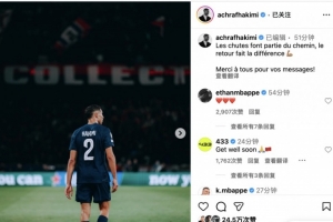 體育資訊11月6日訊 阿什拉夫在對陣拜仁的比賽中受傷,球員發(fā)文。