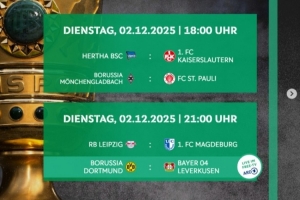 體育資訊11月6日訊 德國(guó)杯1/8決賽各場(chǎng)開球時(shí)間公布,12月3日4點(diǎn)勒沃庫(kù)森vs多特蒙德,4日3點(diǎn)45柏林聯(lián)合vs拜仁。
