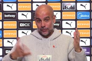 體育資訊11月07日訊 曼城主帥瓜迪奧拉出席對陣?yán)锲值挠⒊惽鞍l(fā)布會,談到了在冠軍爭奪戰(zhàn)中追趕當(dāng)前領(lǐng)頭羊阿森納的話題。