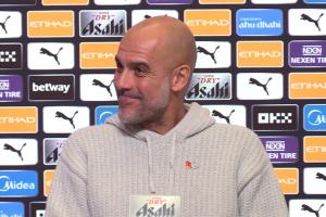 體育資訊11月07日訊 曼城主帥瓜迪奧拉出席對(duì)陣?yán)锲值挠⒊惽鞍l(fā)布會(huì),被問到自己是否是足壇歷史最佳主帥時(shí),瓜帥搞怪地表示同意。