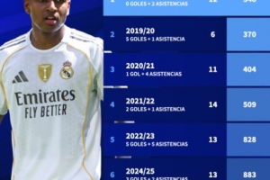 體育資訊11月8日訊 盡管皇馬主帥阿隆索多次在新聞發(fā)布會上強調(diào)羅德里戈是球隊陣中重要一員,但數(shù)據(jù)卻顯示了完全不同的情況。在進攻端,只有恩德里克和貢薩洛-加西亞比他出場時間更少。事實上,這是他加盟皇馬以來前15場比賽出場時間最少的一個賽季。