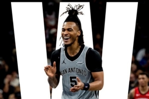 比賽結(jié)束后,馬刺官推曬出了本場比賽的贏球海報,卡斯爾登上封面。