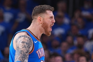 根據(jù)數(shù)據(jù)統(tǒng)計(jì),此戰(zhàn)之后,哈滕成為了雷霆隊(duì)史上第一個(gè)以至少75%命中率砍下至少30+15的球員。