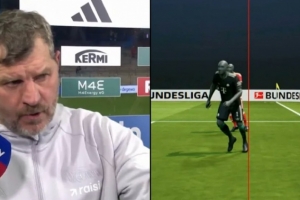賽后,柏林聯(lián)主帥鮑姆加特向記者抱怨:“第一個球應(yīng)該算作進球。僅僅因為5毫米的差距就判越位——我們這里談及的真的是5毫米——有些人簡直是瘋了。”