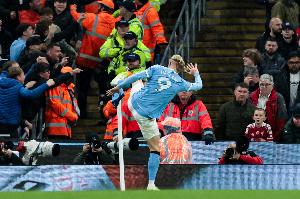 體育資訊11月10日訊 英超第11輪比賽,曼城在伊蒂哈德球場(chǎng)迎戰(zhàn)利物浦。本場(chǎng)比賽,主隊(duì)前鋒哈蘭德盡管在上半場(chǎng)錯(cuò)失1粒點(diǎn)球,但他之后頭槌破門為球隊(duì)首開紀(jì)錄。