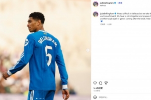 貝林厄姆社媒:客戰(zhàn)巴列卡諾總是很難,但我們拿到了1分并向前看