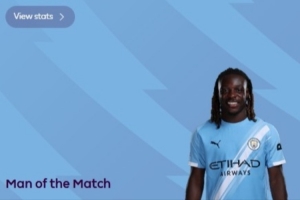 體育資訊11月10日訊 2025-26賽季英超第11輪焦點(diǎn)戰(zhàn),曼城3-0利物浦,賽后,多庫當(dāng)選英超官方評(píng)選的全場(chǎng)最佳球員。