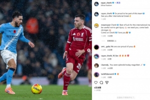 他也在賽后通過社媒曬出自己對位羅伯遜的比賽照,并配文:“很自豪成為這支球隊的一員,我們國家隊比賽周之后再見!”