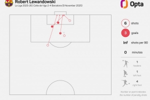 據(jù)Opta統(tǒng)計(jì),37歲80天的萊萬是本世紀(jì)西甲第三年長(zhǎng)的戴帽球員,僅次于若熱-莫利納(39歲241天)、華金-桑切斯(38歲140天)。