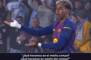 根據(jù)Movistar鏡頭顯示,被塞爾塔攻入他們的第一球后,亞馬爾顯得有些不滿,他向隊友們問道:“我們的中場在干什么?”隨后,他與一些隊友進(jìn)行了交流,試圖找到改進(jìn)的方法。類似的情況在比分變成2-2后再次出現(xiàn),DAZN的鏡頭似乎捕捉到了亞馬爾似乎在提醒隊友們防線壓得太靠上,應(yīng)該稍微往后退。