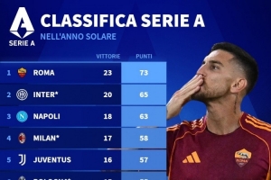 體育資訊11月10日訊 德國轉(zhuǎn)會市場統(tǒng)計了今年意甲球隊拿到的積分,列出2025年意甲積分榜單,羅馬73分居首。