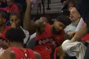 “很多人都認(rèn)為他應(yīng)該站起來道歉。我理解他的沮喪,他在比賽中摔倒得很尷尬,而且那是一場(chǎng)艱難的比賽,他們有很多失誤,最終沒能贏得比賽。但我不認(rèn)為這是正確的回應(yīng)方式。有人說他像三歲小孩一樣,確實(shí)如此,這種事情經(jīng)常發(fā)生在有小孩的家庭里。但我認(rèn)為這不是合適的反應(yīng)。他應(yīng)該對(duì)此道歉,但他沒有這樣做,沒有任何反應(yīng)。我不知道他當(dāng)時(shí)是怎么想的,但作為一個(gè)普通人,我認(rèn)為他應(yīng)該有所表示。他不應(yīng)該坐在那里看著大家清理,尤其是當(dāng)水濺到隊(duì)友臉上時(shí)。他應(yīng)該幫助清理,而不是讓別人的生活變得更加困難。也許這是因?yàn)樗浅?jí)富豪,覺得這些人理應(yīng)為他服務(wù)。但我們不應(yīng)該輕易下結(jié)論。他看起來非常沮喪,可能只是心情不好而已?!盌onnie Freeman表示。