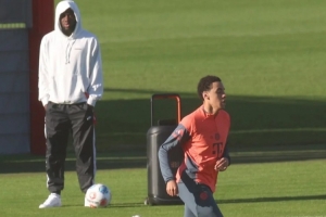 值得一提的是,好友阿方索·戴維斯(25歲/7個半月前右膝十字韌帶撕裂)在訓(xùn)練課開始后不久便身著休閑服來到訓(xùn)練場。這位加拿大國腳隨著穆西亞拉用手機(jī)連放的XXL音響中說唱樂節(jié)奏舞動,并為正在進(jìn)行恢復(fù)訓(xùn)練的伙伴歡呼助威。這位左后衛(wèi)情緒高漲,強(qiáng)勁的節(jié)拍響徹拜仁訓(xùn)練基地。