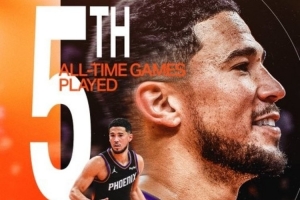 這是布克太陽生涯的第684場比賽,超越凱文·約翰遜獨居隊史第五位,排在他前面的是迪克·范-阿斯代爾。