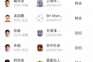 申花夏窗轉入方面,崔麟和戴偉浚補報名,球隊上調了吳啟鵬,另外還從葡超莫雷拉人引進外援阿蘇埃。