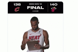體育資訊11月11日訊 NBA常規(guī)賽,熱火140-138加時(shí)險(xiǎn)勝騎士。