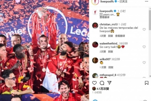 2019-2020賽季,利物浦提前7輪鎖定英超冠軍,在2020年7月22日主場(chǎng)對(duì)陣切爾西的比賽之后,利物浦球員們捧起隊(duì)史首座英超冠軍獎(jiǎng)杯。