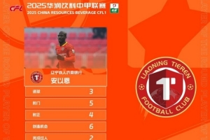 上演帽子戲法,遼寧鐵人球員安以恩當(dāng)選中甲第30輪最佳球員