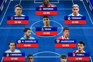 后衛(wèi):卡雷拉斯(皇馬,5000萬歐)、莫斯克拉(阿森納,3500萬歐)、阿森西奧(皇馬,3000萬歐)、普比爾(馬競,1600萬歐)