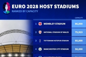 體育資訊11月13日訊 2028年歐洲杯承辦球場(chǎng)公布,德國(guó)轉(zhuǎn)會(huì)市場(chǎng)列出了各球場(chǎng)容量排名。