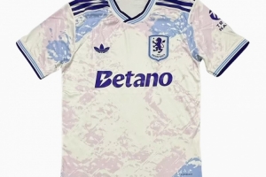 這款由阿迪達(dá)斯打造的阿斯頓維拉2025-26賽季第三球衣,采用白色基底搭配柔和的淡紫色、玫瑰粉與天藍(lán)色大理石紋路。抽象圖案設(shè)計(jì)明顯受到傳統(tǒng)教堂彩繪玻璃窗的啟發(fā),為球衣注入了文化與建筑敘事元素。