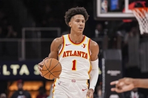 杰倫·約翰遜上季肩傷報銷前,是這個時代的完美策應(yīng)鋒:全能身手、無短板、適配任何隊友,正逼近生涯首次全明星。他會傳球、能接球投、快攻飛天、籃板狂魔且多位置防守,而且沒有明顯到足以給隊友加負擔的弱點。如果他有一手擺脫中投,再加一手背打,簡直可以去問火箭: