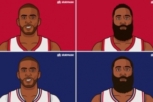 哈登場均31.8分5.7籃板7.5助攻,保羅16.6分7.7助攻1.8搶斷。