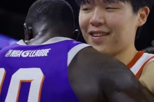 說啥呢?楊瀚森賽后和好兄弟馬盧阿奇相擁致意 還簡單耳語了一句