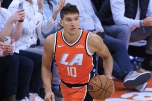 快船球員博格達(dá)諾維奇本場比賽替補(bǔ)出場在進(jìn)攻端效率非常不錯(cuò),外線三分很準(zhǔn),防守端也很積極多次搶斷。